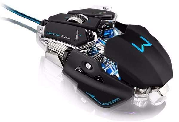 Definição de macros, botões extras, retro iluminação com múltiplas cores, ajuste ergonômico e seleção de DPI. Tudo isso, a um preço relativamente baixo.