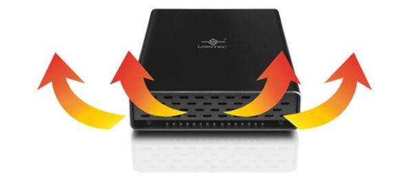 Para isto a gaveta é fabricada em alumínio para uma dissipação passiva de calor, contando ainda com furações na parte frontal.