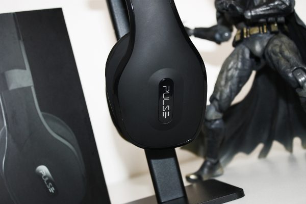 O headphone é todo preto, com acabamento emborrachado na parte externa, em preto fosco. Os botões ficam na parte posterior do fone direito. Já nas laterais, temos o logotipo da Pulse.
