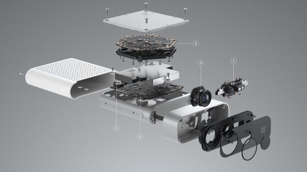 O Azure Kinect Developer Kit vem com todos os sensores do Kinect tradicional, um conjunto de sete microfones e uma câmera RGB de 12MP, além da câmera de profundidade de 1MP, com sensor ToF (time-of-flight).