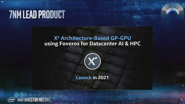 Falando sobre as placas gráficas da Intel, a plataforma Intel Xe, também serão baseadas no processo de fabricação de 7 nanômetros, chegando primeiro ao mercado corporativo de datacenters, com foco em inteligência artificial e supercomputação (HPC).