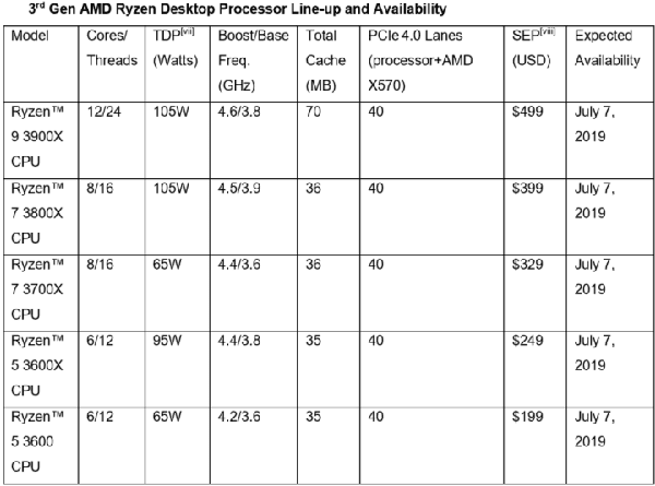 Todos os processadores estarão disponíveis a partir de 7 de Julho, e os preços começam nos $329 para o AMD Ryzen 7 3700X, $399 para o Ryzen 7 3800X e $499 para o Ryzen 9 3900X. O Ryzen 9, como destacado pela Su, custa menos da metade do preço de venda de $1.100 do Intel Core i9-9900X.